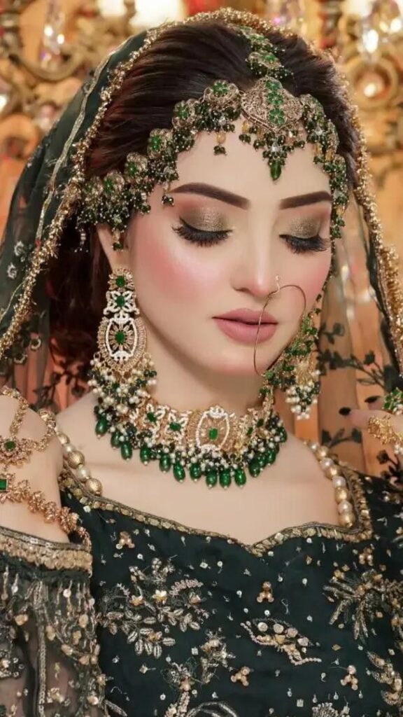 📷 ALT text suggestion: “Pakistani bridal dress in bright green with gold”